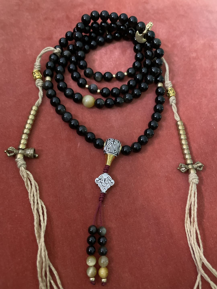本当に美しいです!!108珠のマラビーズ、ゴールドシーンオブシディアン、タイガーアイ、イーグルアイのウェルスブレスレット。発送も迅速で、まさに私が探していたものです。