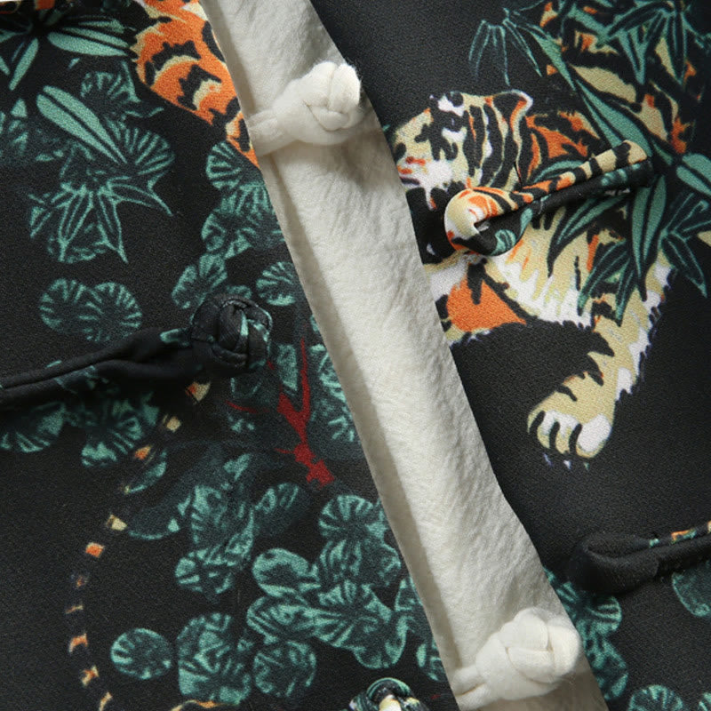 Buddha Stones春節 森の虎 赤袖 カエルボタン 唐装 メンズ ジャケット シャツ ポケット付き