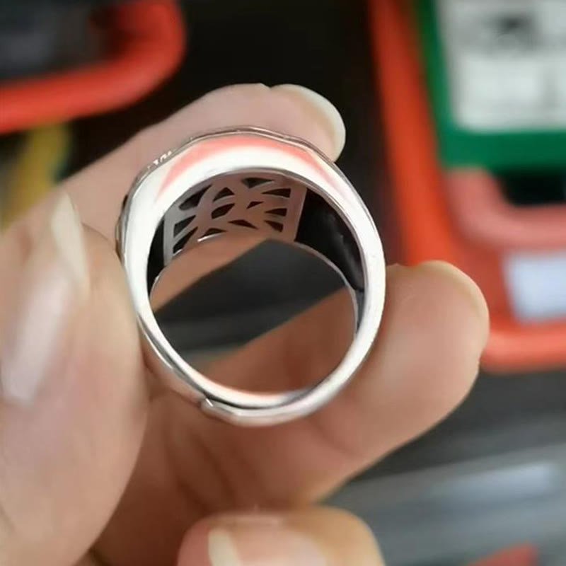 仏陀石 925 スターリングシルバー サンスクリットデザイン 彫刻 保護 調節可能 リング リング BS 1