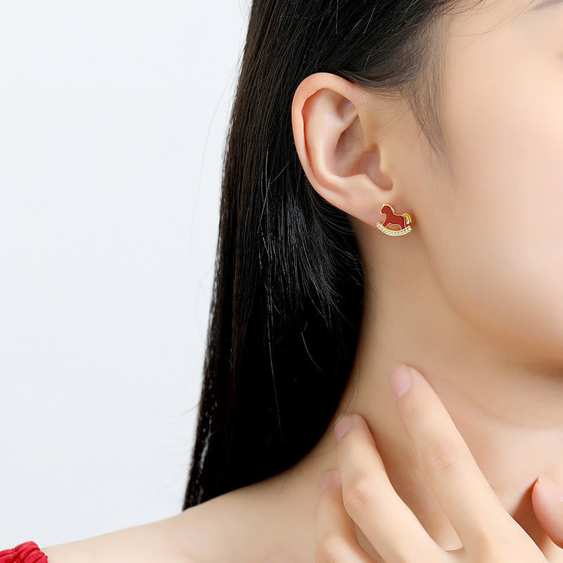 Buddha Stones925スターリングシルバー 馬年デザイン レッドアゲート コンフィデンス イヤリング - 馬のイヤリング - image 0