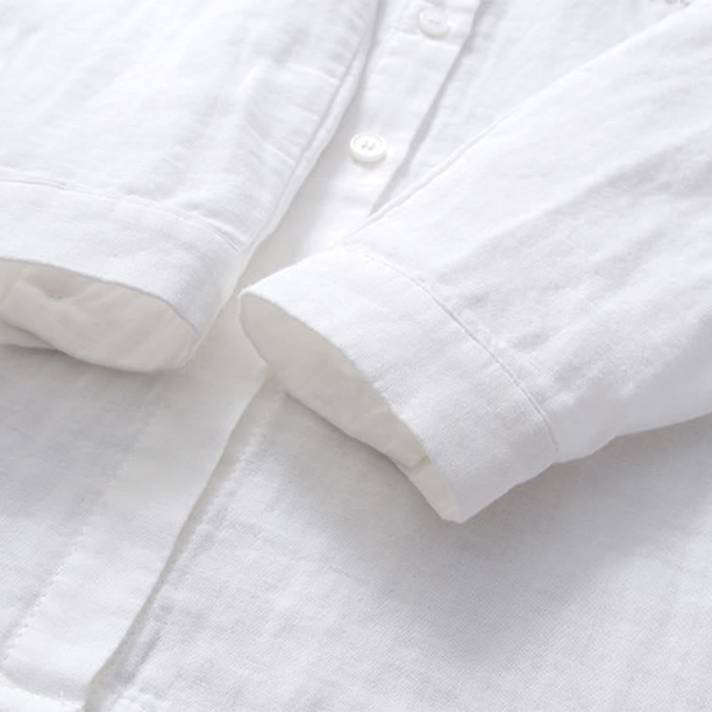 Buddha Stones秋 ホワイト 幾何学模様 ストライプ 花 刺繍 ボタン レディース コットン 長袖シャツ - ホワイトマッシュルーム - US4、 UK/AU8、 EU36 (L) - image 11