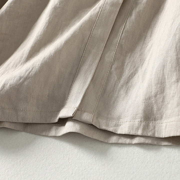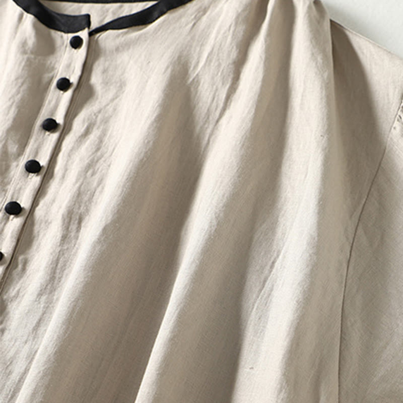 Buddha Stonesボタンデザイン レディース コットンリネン 長袖コート ポケット付き