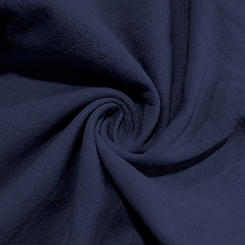 Buddha Stones無地ボタン ドローストリング メンズ コットンパンツ ポケット付き