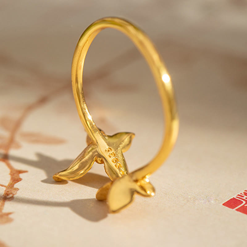 Buddha Stones925スターリングシルバー バタフライラブリング - ゴールデン - image 3