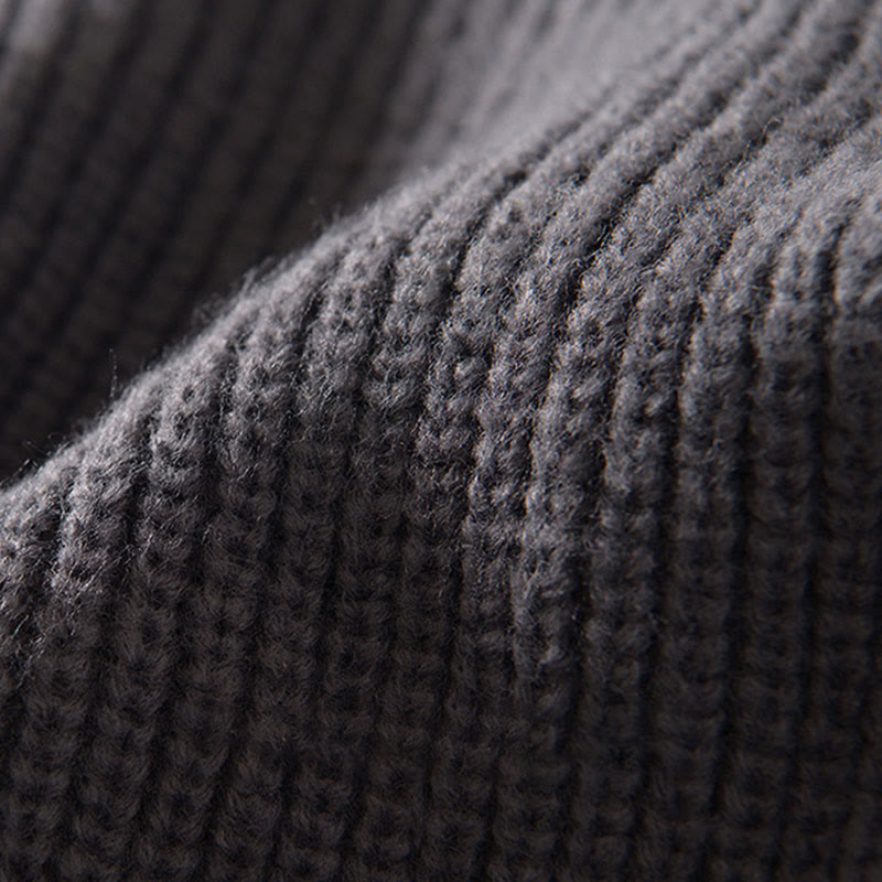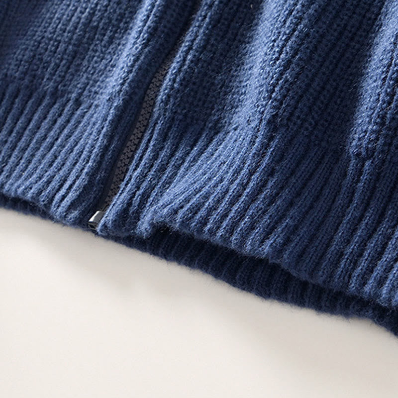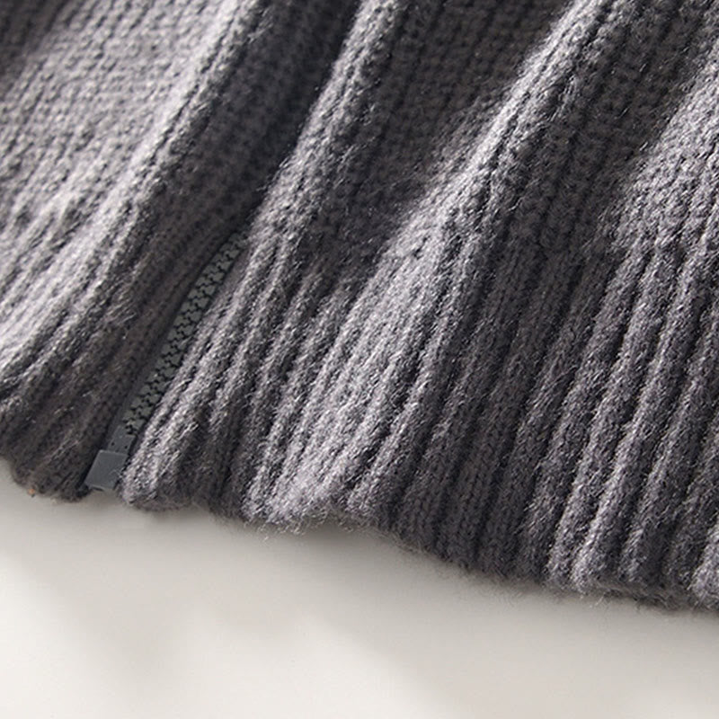 Buddha Stones冬用 無地 ジッパー ニット カーディガン メンズ 長袖 コットン ジャケット ポケット付き