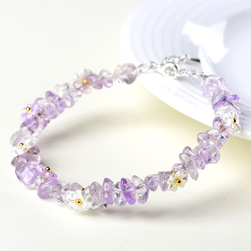 Buddha Stones 天然アクアマリン、ペリドット、ストロベリークォーツ、各種クリスタルを使用したセレニティブレスレット - アメジスト(手首周り:15~20cm) - image 41