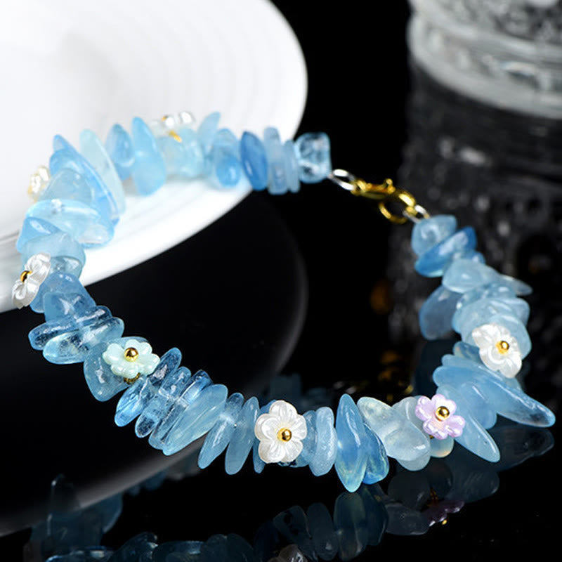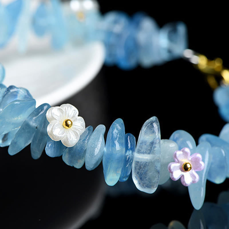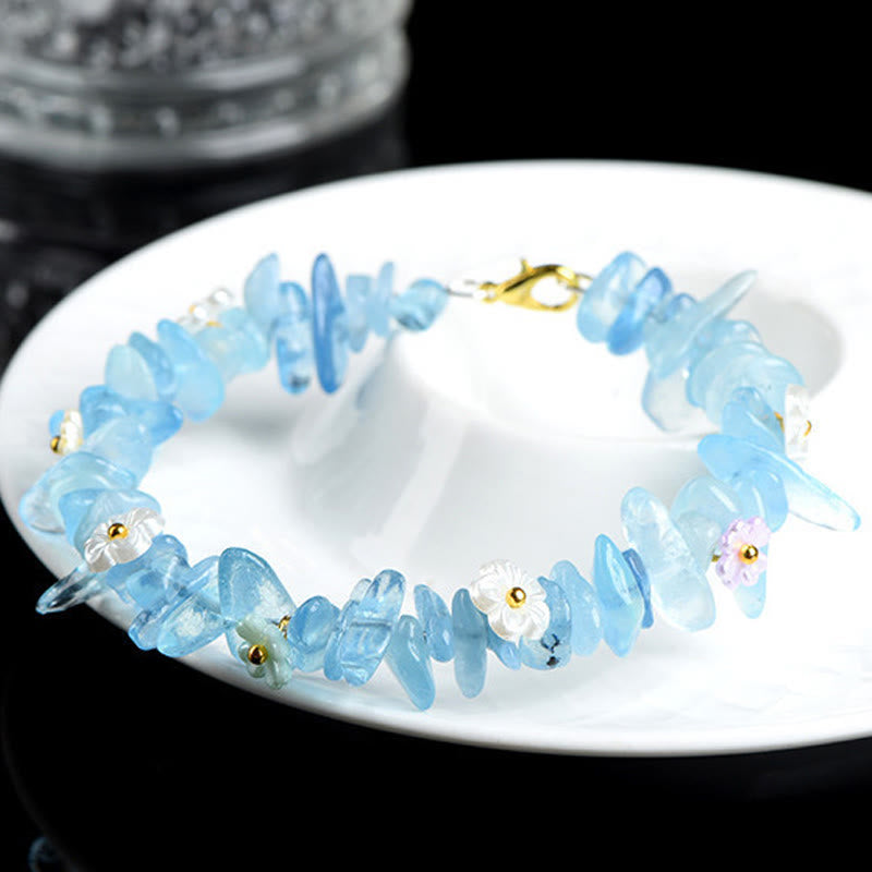 Buddha Stones 天然アクアマリン、ペリドット、ストロベリークォーツ、各種クリスタルを使用したセレニティブレスレット - アクアマリングリーンリーフ(手首周り:15~20cm) - image 0