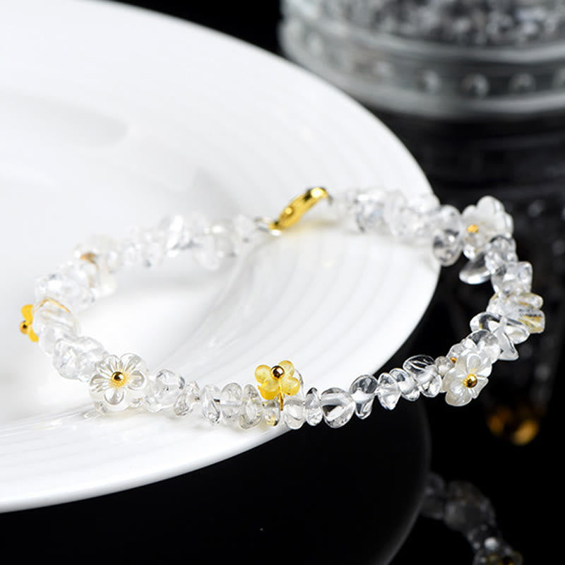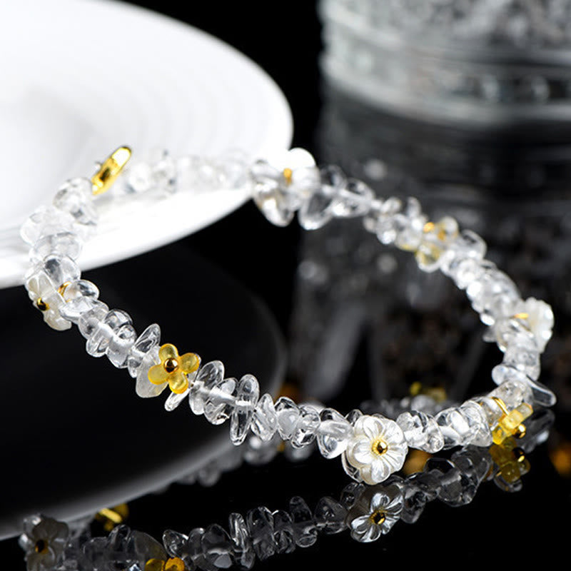 Buddha Stones 天然アクアマリン、ペリドット、ストロベリークォーツ、各種クリスタルを使用したセレニティブレスレット - ホワイトクリスタル(手首周り:14~15cm) - image 29
