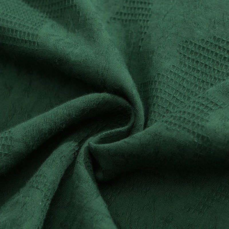 Buddha Stonesレトロ 純色 カエルボタンデザイン ジャカード 花柄 メンズ 半袖 コットンリネン シャツ - シーグリーン - US/UK/AU46、 EU56 (5XL) - image 0