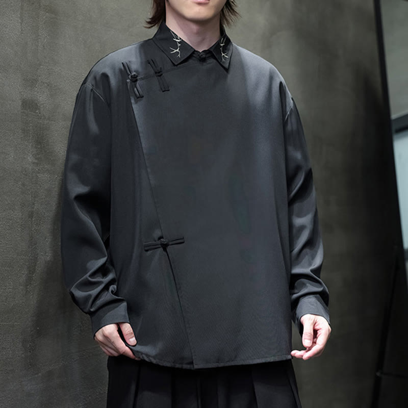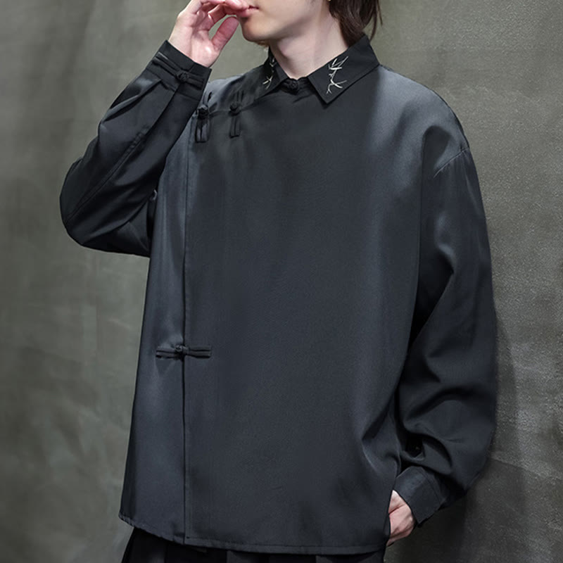 - シンプルなデザイン: トップにはシンプルな中国のカエルボタンデザインが施されています。