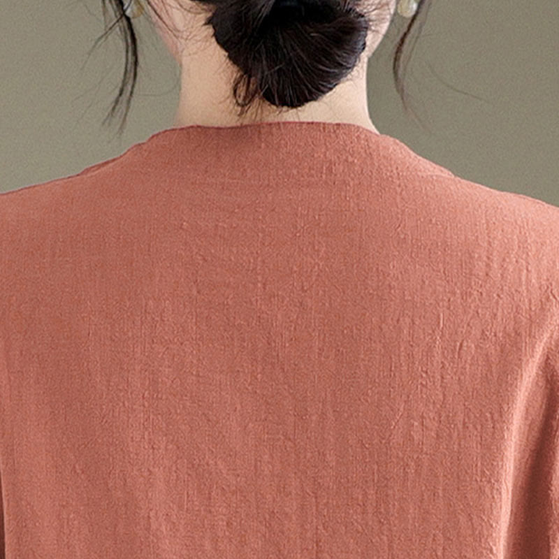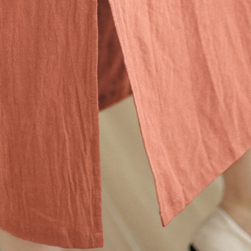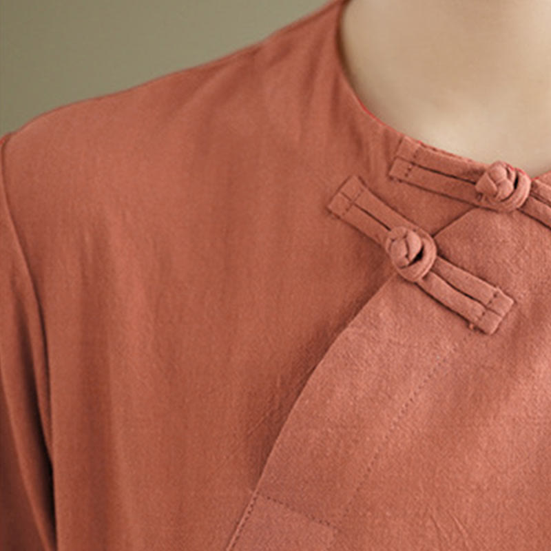 Buddha Stonesの夏ヴィンテージ純色中国風フロッグボタンチャイナドレス、チャイナドレス、ミディ丈ドレス - ダークサーモン - US8-10,UK/AU12-14,EU40-42 (2XL) - image 0