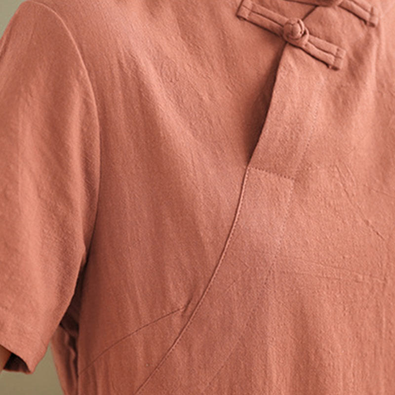 Buddha Stonesの夏ヴィンテージ純色中国風フロッグボタンチャイナドレス、チャイナドレス、ミディ丈ドレス - image 8