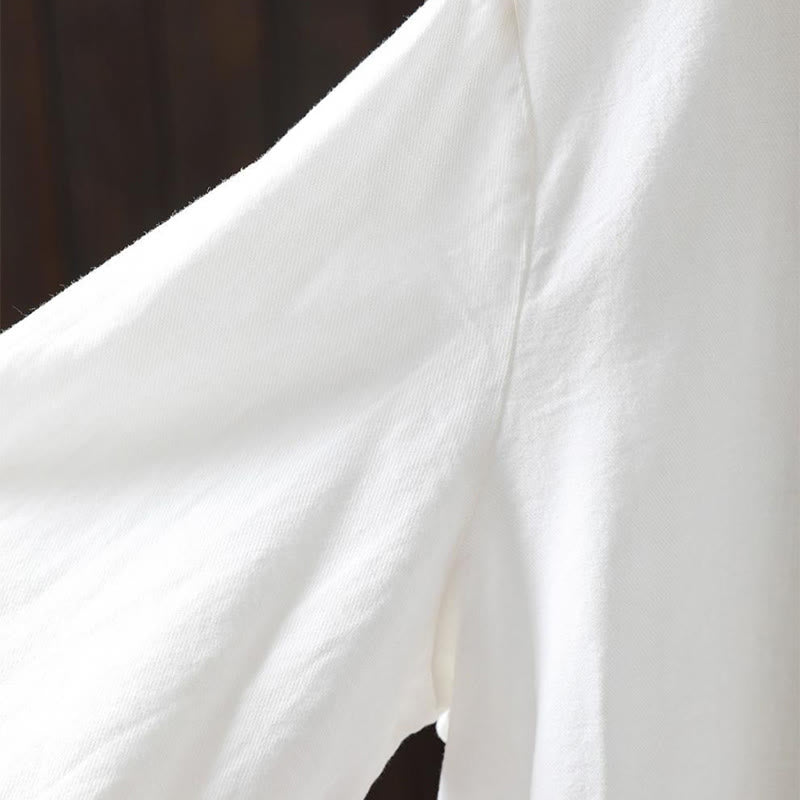 Buddha Stonesの秋ボタンダウンポケット装飾デザインレディーススタンドカラー長袖コットンシャツ - 白 - US6、 UK/AU10、 EU38 (L) - image 0