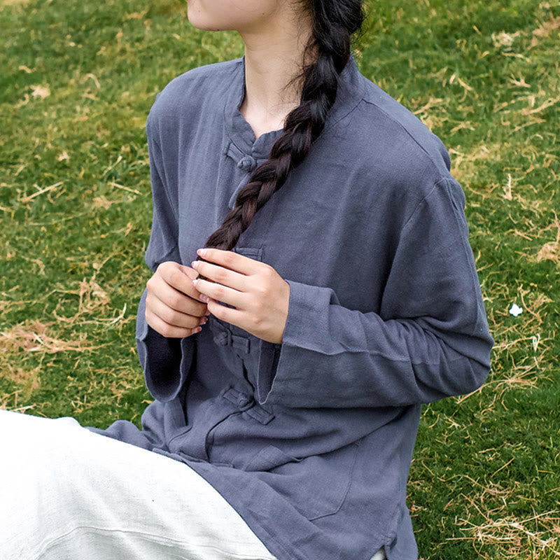 Buddha Stones無地 カエルボタン 長袖 コットンリネン レディース シャツ ポケット付き - image 1