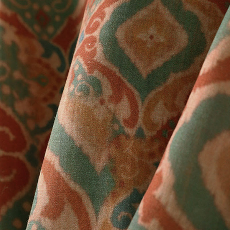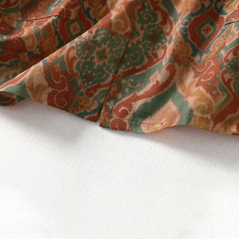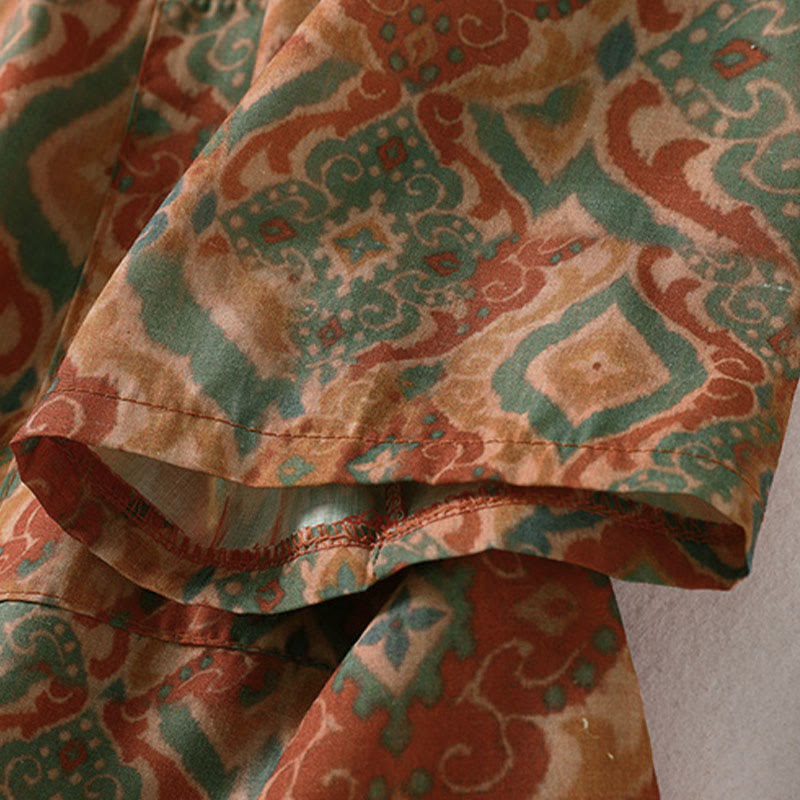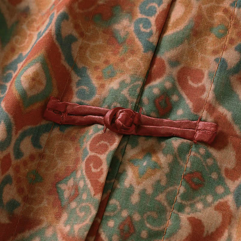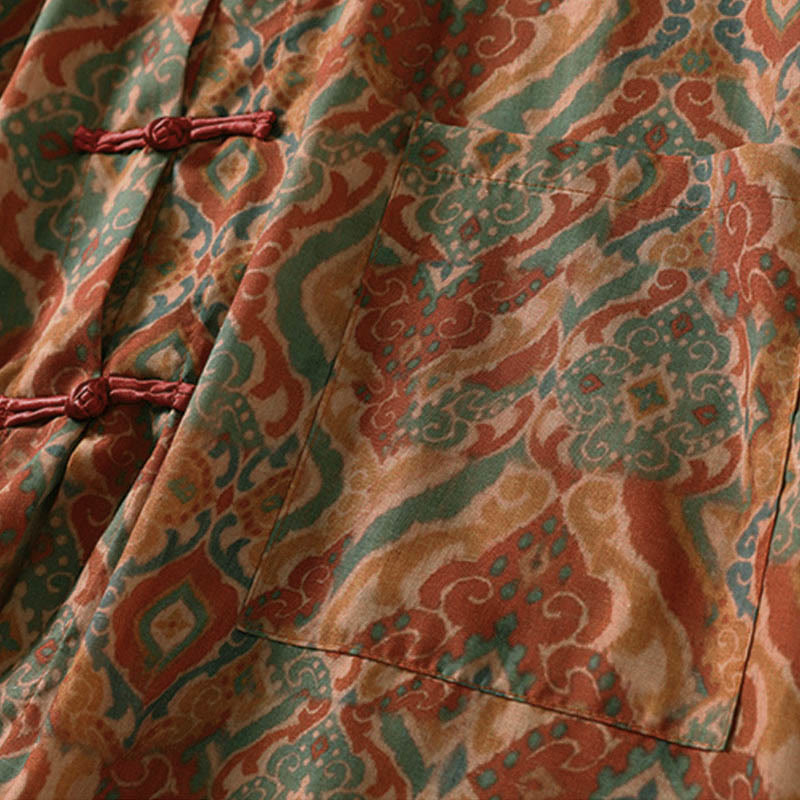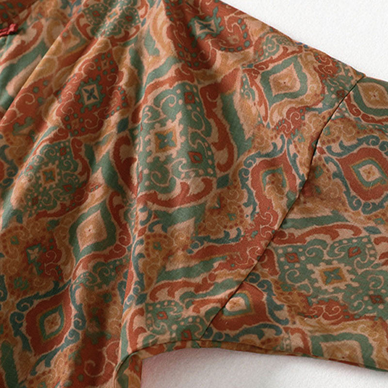 Buddha Stones プリント中国風カエルボタン長袖スタンドカラーレディースシャツポケット付き - ペルー - US12、 UK/AU16、 EU44 (XL) - image 0