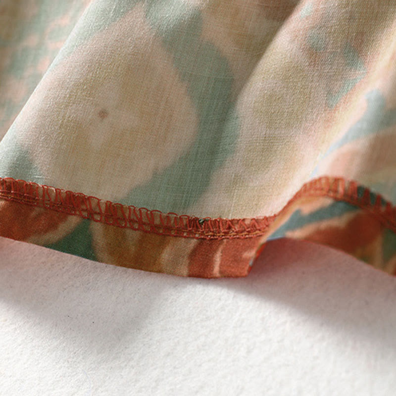 Buddha Stones プリント中国風カエルボタン長袖スタンドカラーレディースシャツポケット付き - image 6