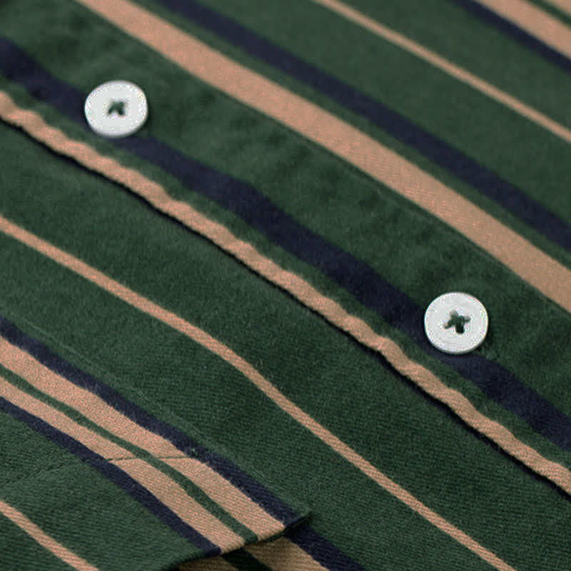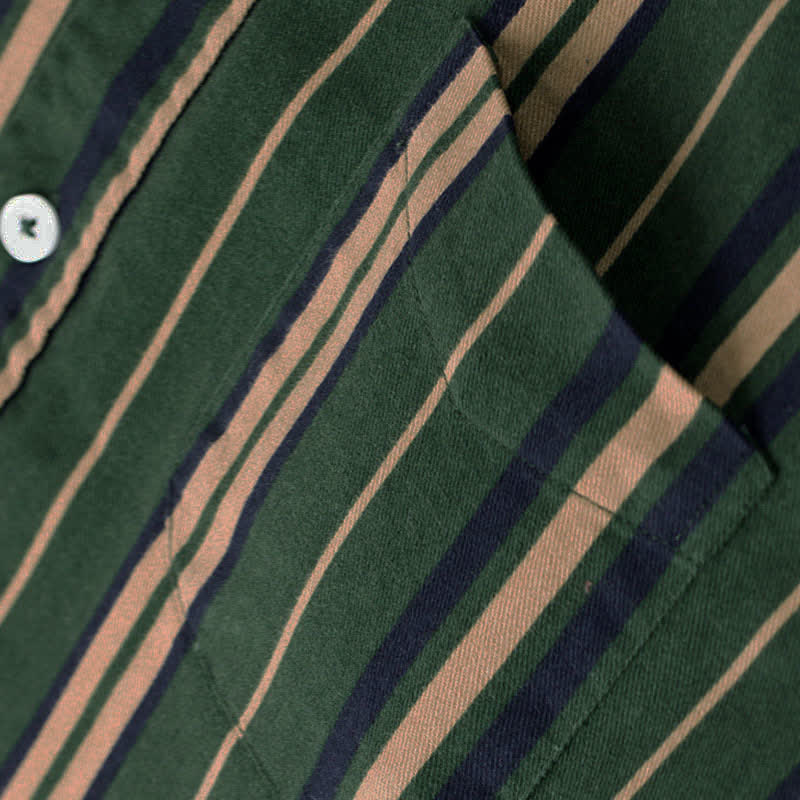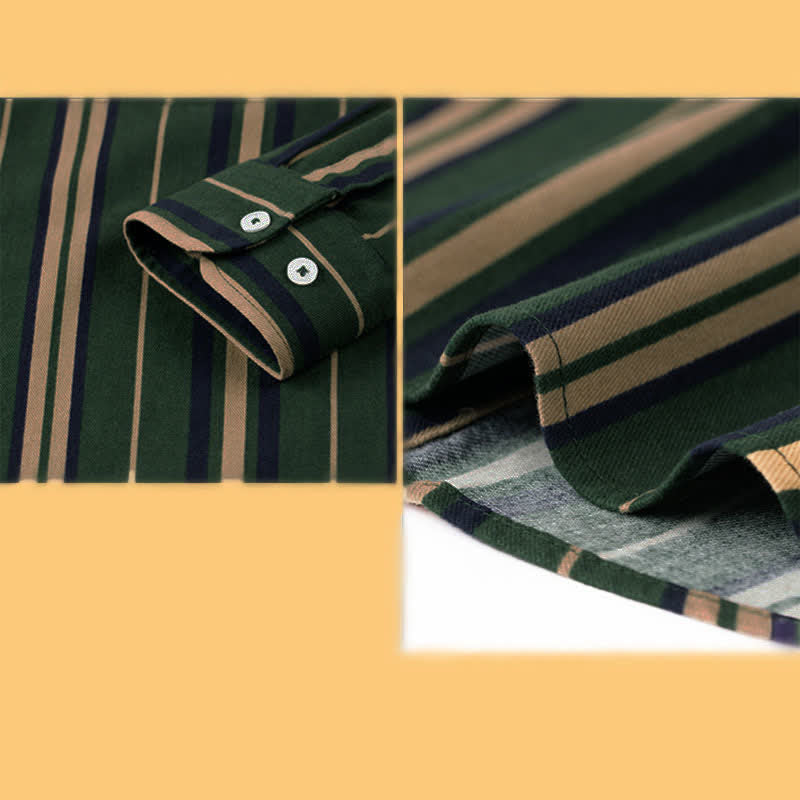 Buddha Stones レトロなカラーブロックストライプの長袖ボタンメンズコットンシャツ(ポケット付き) - ダークグリーン - US/UK/AU44、 EU54 (4XL) - image 4