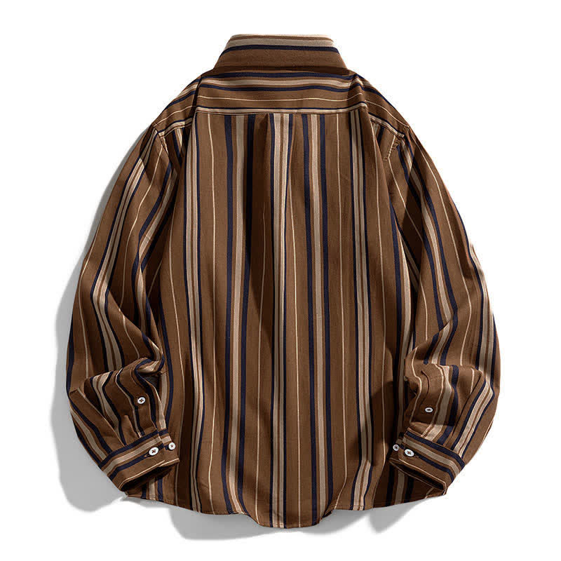 Buddha Stones レトロなカラーブロックストライプの長袖ボタンメンズコットンシャツ(ポケット付き) - サドルブラウン - US/UK/AU44、 EU54 (4XL) - image 0