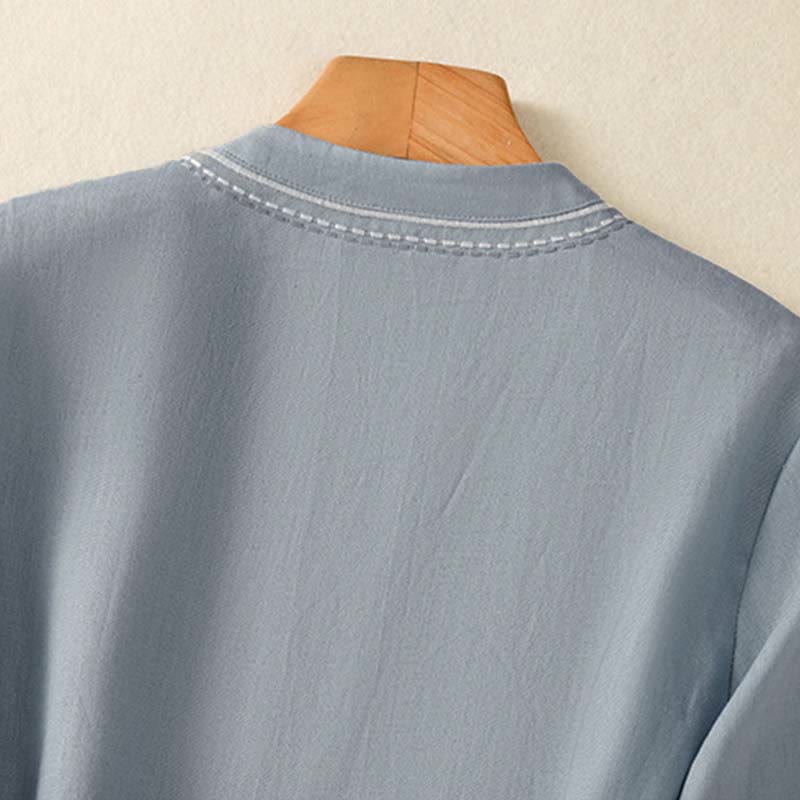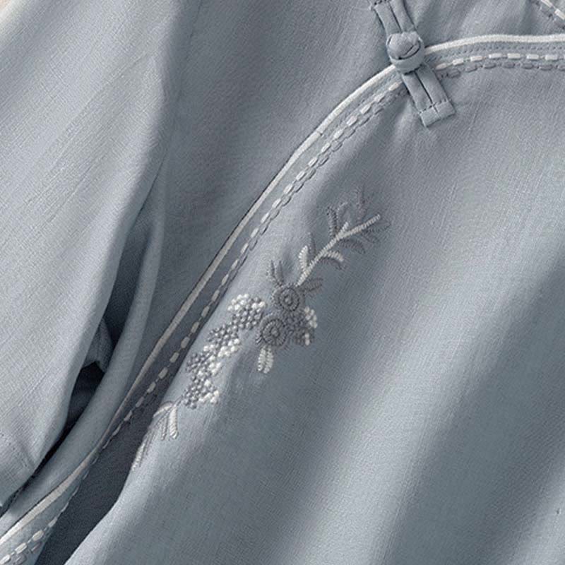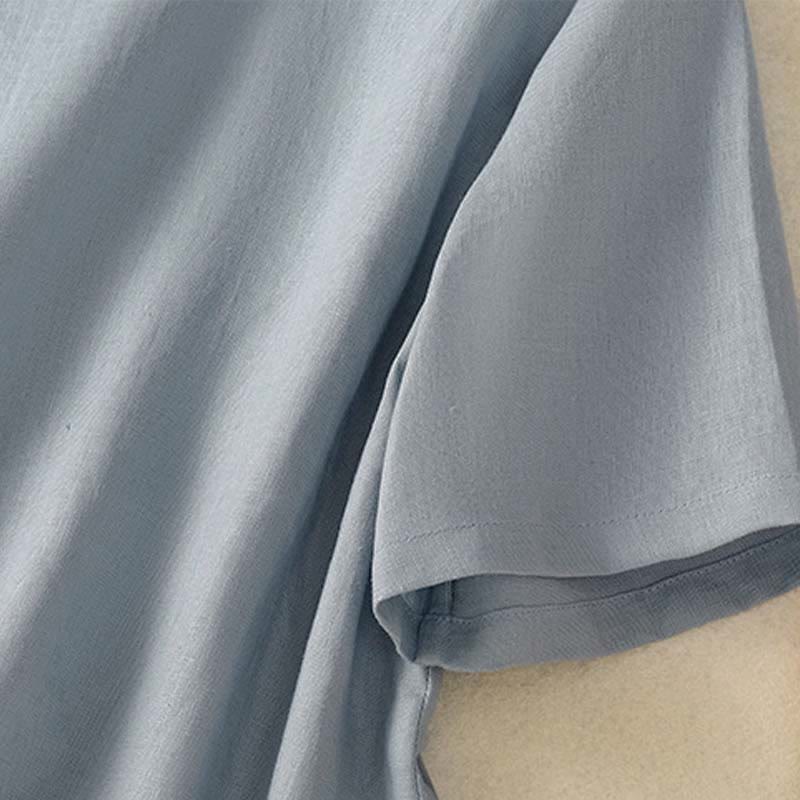 Buddha Stones 夏 スタンドカラー 半袖 無地 レディース フロッグボタン コットンシャツ ポケット付き - image 7