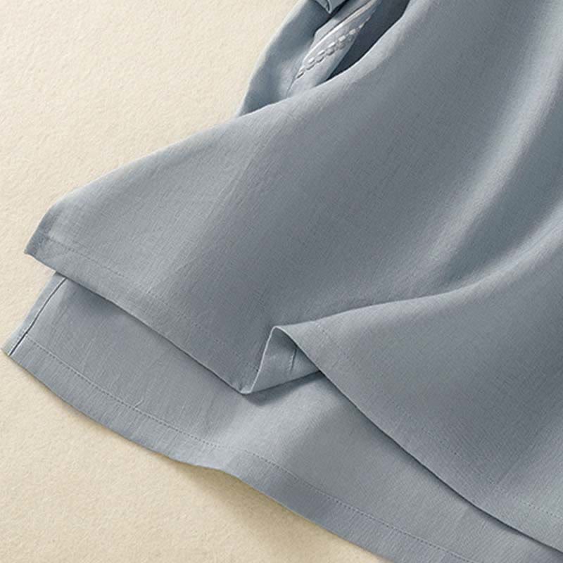 Buddha Stones 夏 スタンドカラー 半袖 無地 レディース フロッグボタン コットンシャツ ポケット付き - ライトスチールブルー - US8-10,UK/AU12-14,EU40-42 (2XL) - image 0