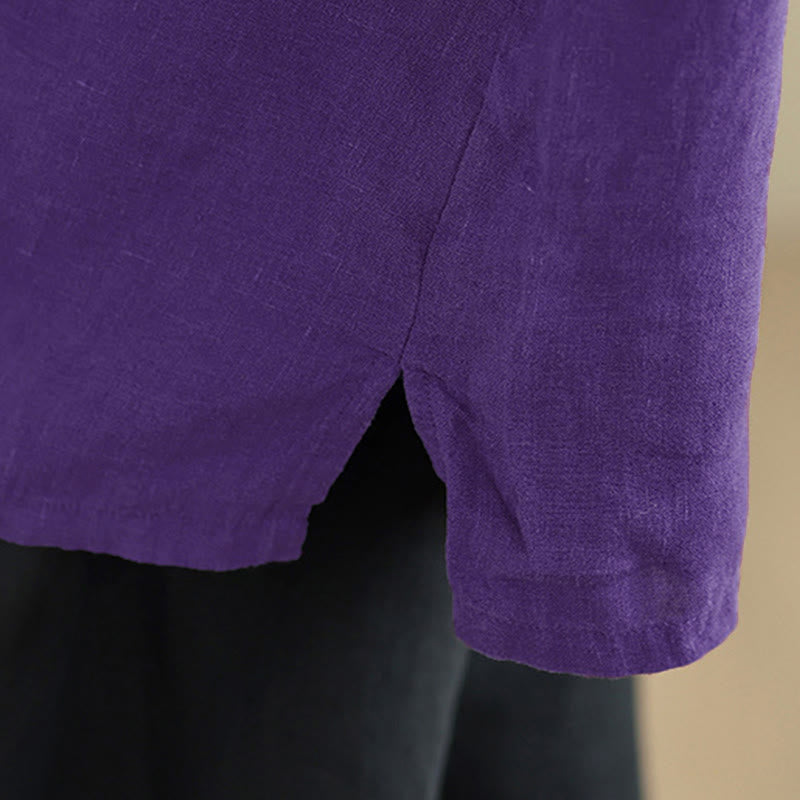 Buddha Stones 春のVネックフロッグボタン長袖無地レディースコットンシャツ - image 13