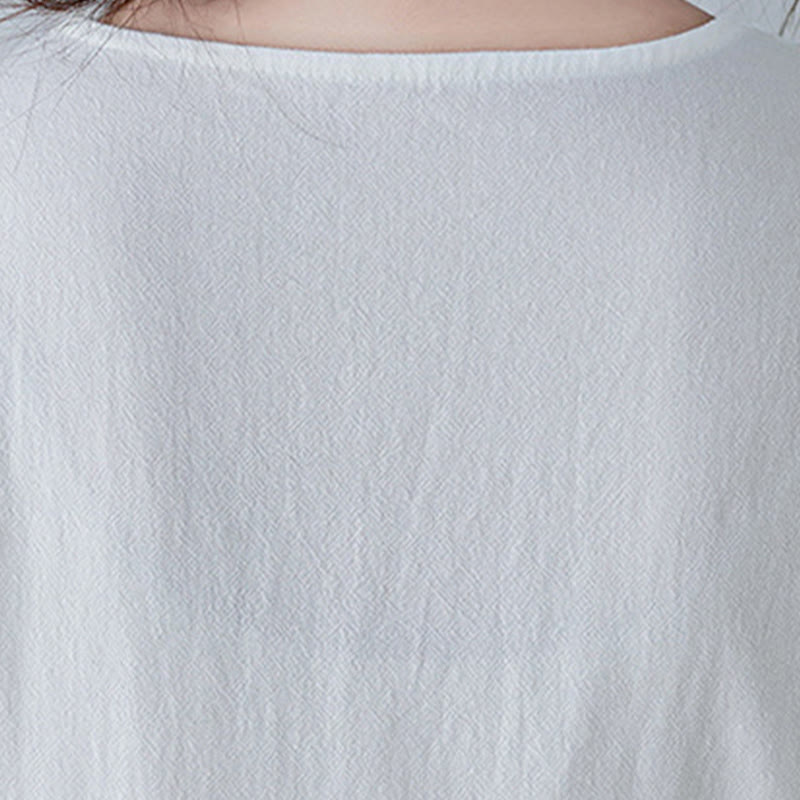 Buddha Stonesカジュアル ボヘミア 刺繍 花柄 シンプルデザイン 七分袖 Vネック コットンリネン マキシドレス - フローラルホワイト - US8-10,UK/AU12-14,EU40-42 (2XL) - image 5