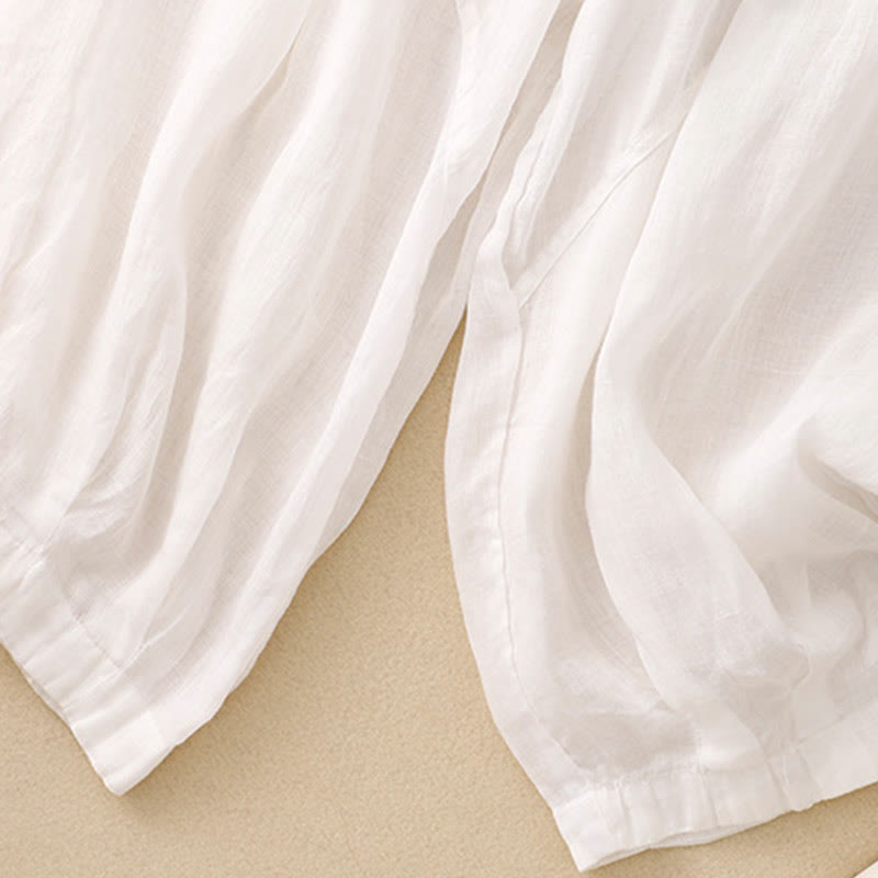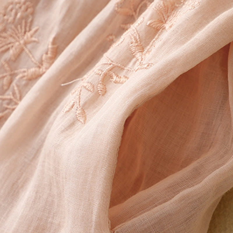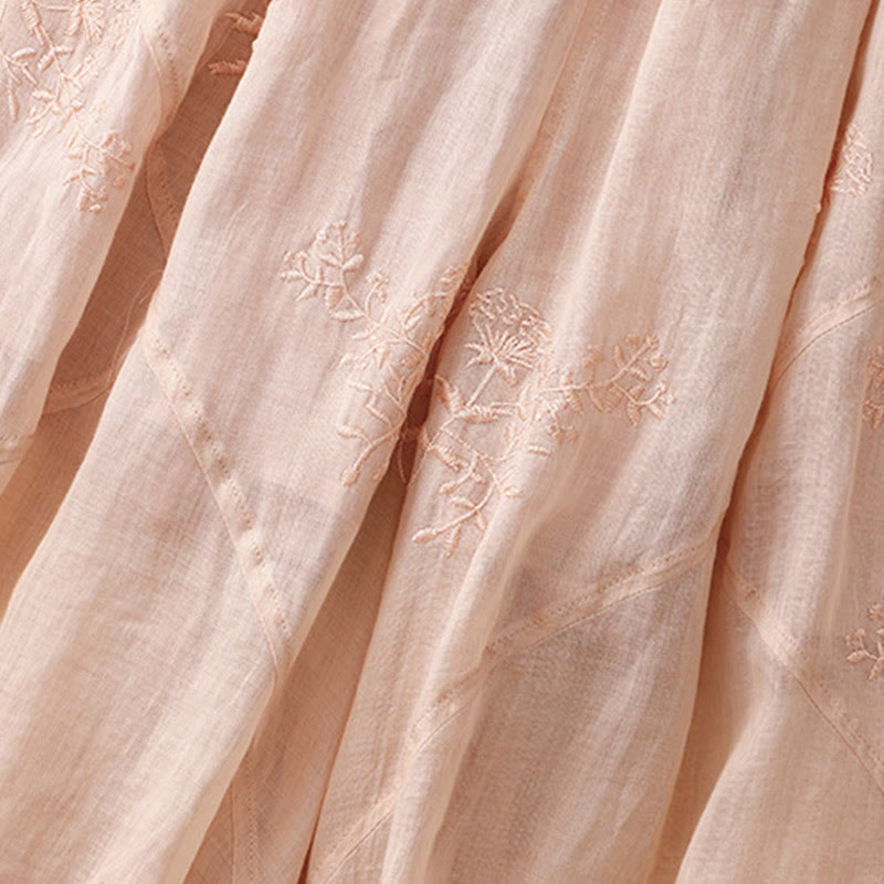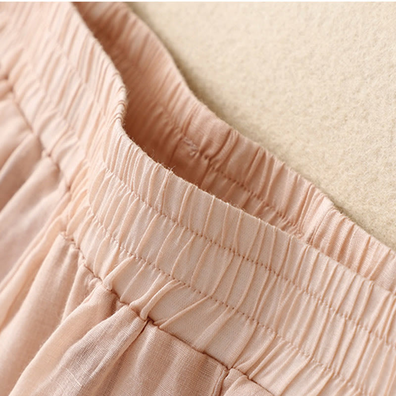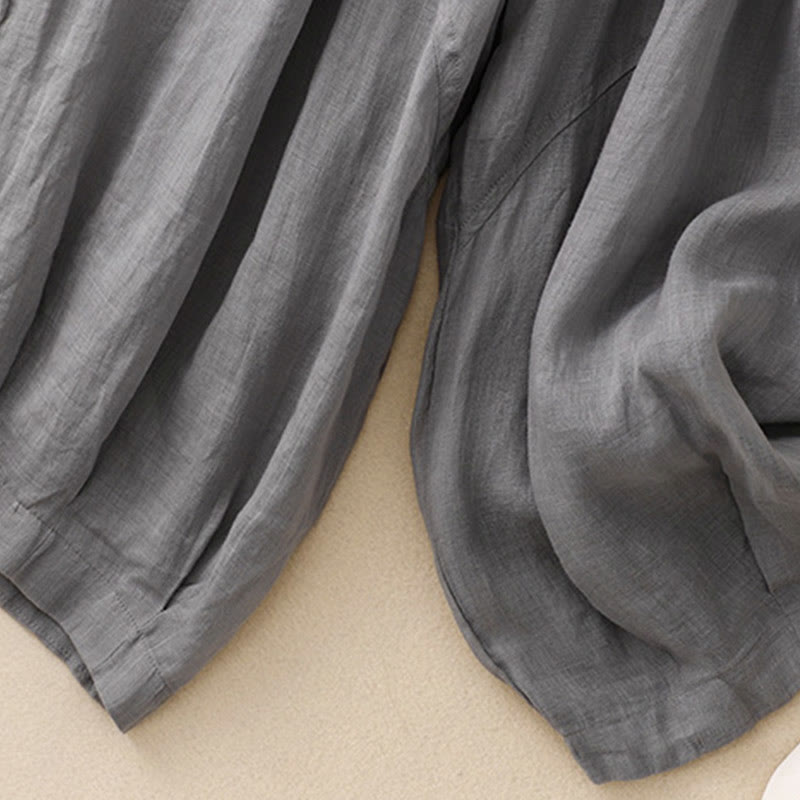 Buddha Stones刺繍柄レディースコットンリネンハーレムパンツ(ポケット付き)