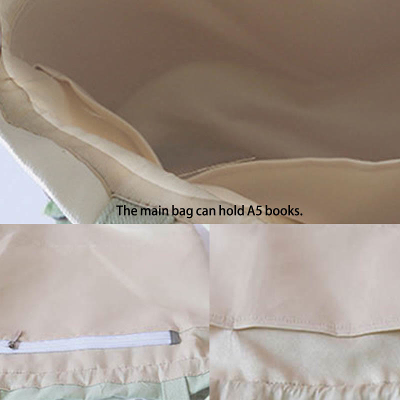 • ❤️ 内部構造: メインポケット 1 つ (ストラップ留め)、内ポケット 1 つ、ジッパー付き内ポケット 1 つ。