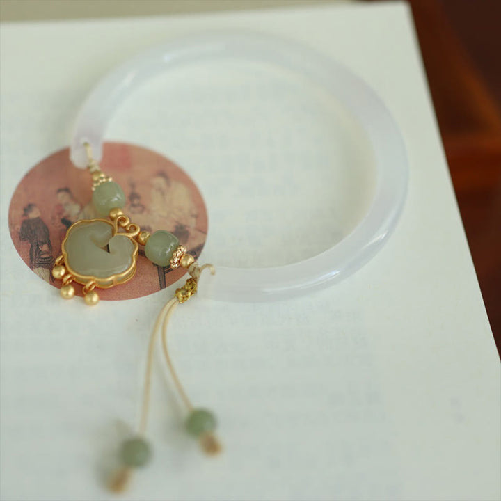 Buddha Stonesカルセドニー和田翡翠925スターリングシルバー吉祥雲如意錠ハーモニーカフハーフブレスレットバングル