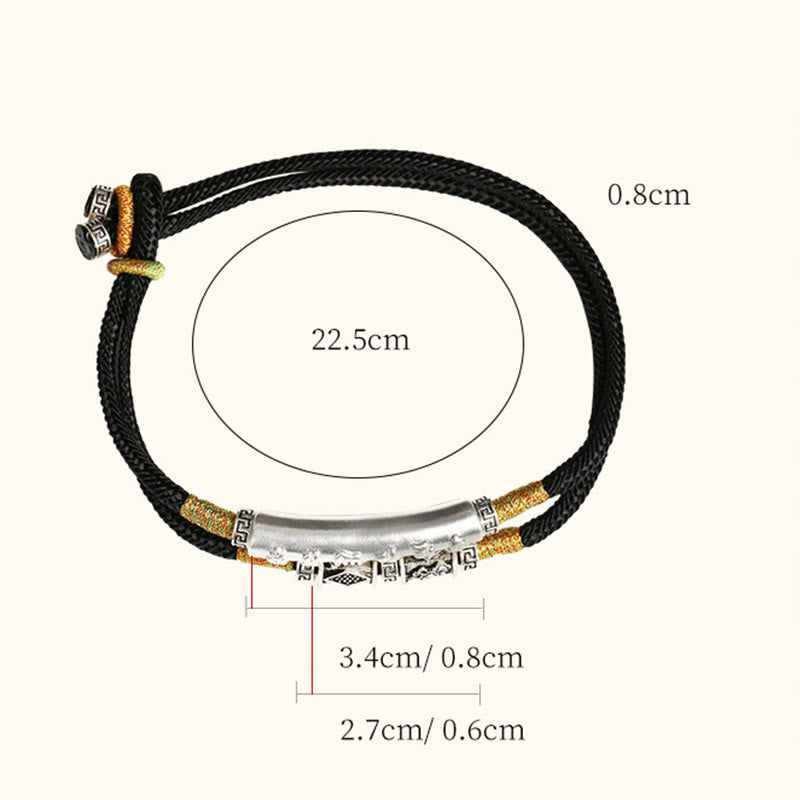 Buddha Stonesドラゴンノットスターリングシルバーオーム・マニ・パドメ・フムダブルハンド編みブレスレット - 黒紐(手首周り:15~20cm) - image 0