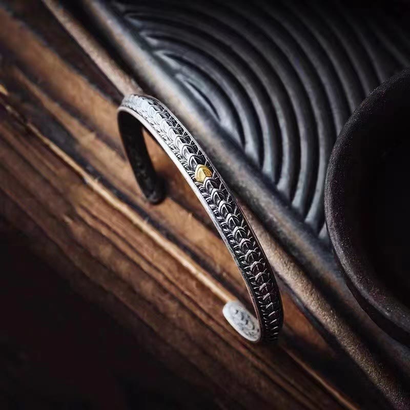 Buddha Stonesヴィンテージ ドラゴンスケール柄 幸運 富 カフブレスレット バングル
