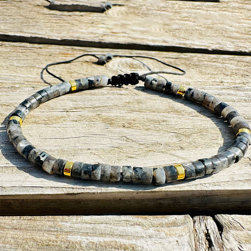 Buddha Stones天然ブラックグリッターストーン 勇気スペーサービーズブレスレット