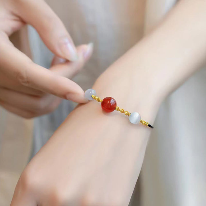 - 素材: 赤瑪瑙、キャッツアイ、紐