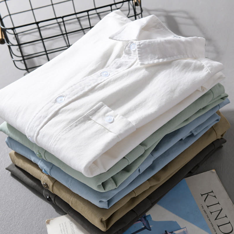 Buddha Stonesカジュアル 無地 ボタンダウン 装飾ポケット メンズ スタンドカラー 長袖 コットンシャツ - 甘露 - US/UK/AU42、 EU52 (3XL) - image 0
