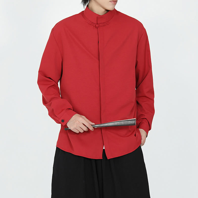 Buddha Stones無地 カエルボタン 長袖 コットン メンズシャツ - 赤 - US/UK/AU46、 EU56 (5XL) - image 10