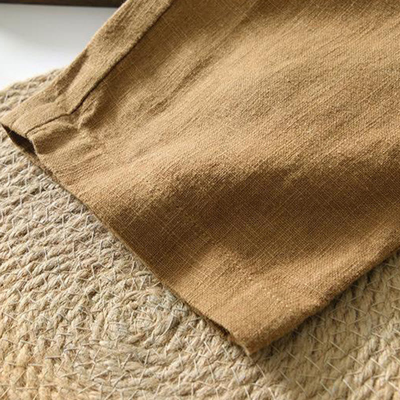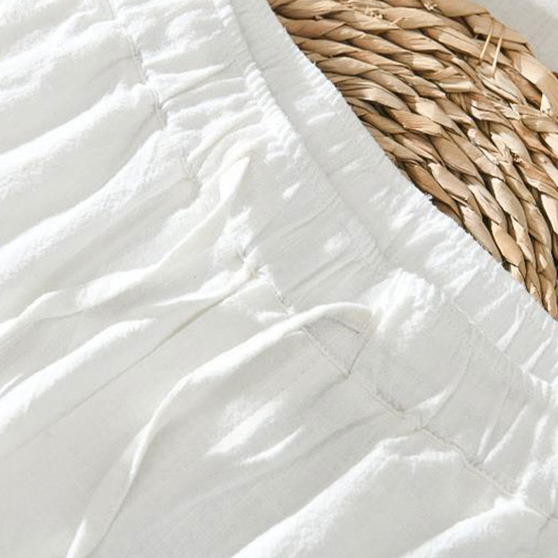 Buddha Stones夏用カジュアルドローストリングラミーリネンメンズパンツ(ポケット付き)