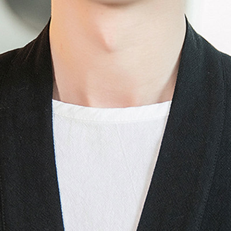 Buddha Stones無地中国風カエルボタンジャケット コットンリネン メンズ 七分袖着物