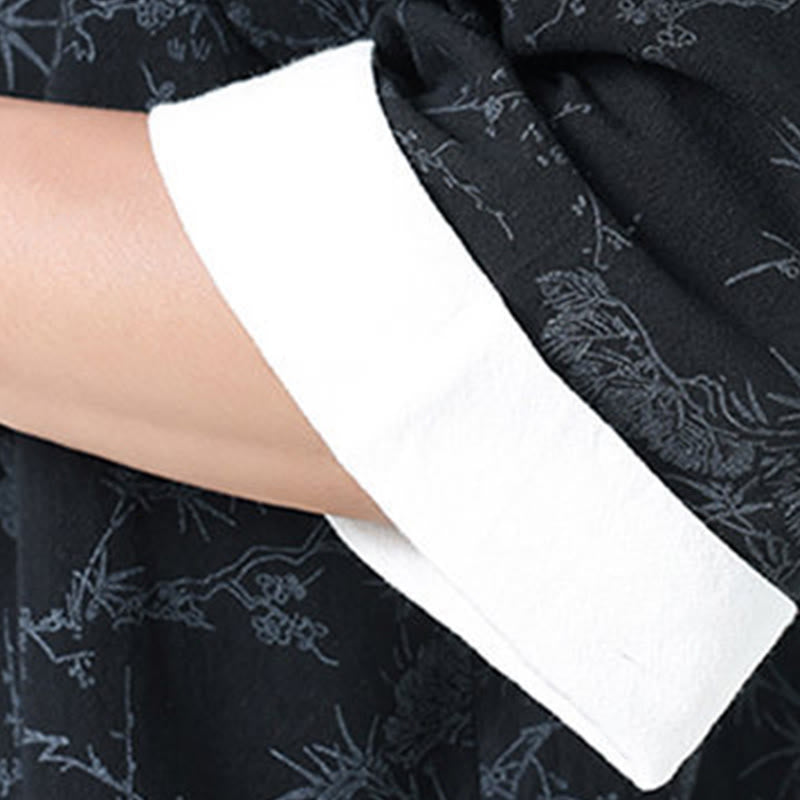 Buddha Stones 夏用 鶴 松 柄 唐装 メンズ フロッグボタン 半袖 コットンシャツ ポケット付き - 黒 - US/UK/AU46、 EU56 (5XL) - image 0