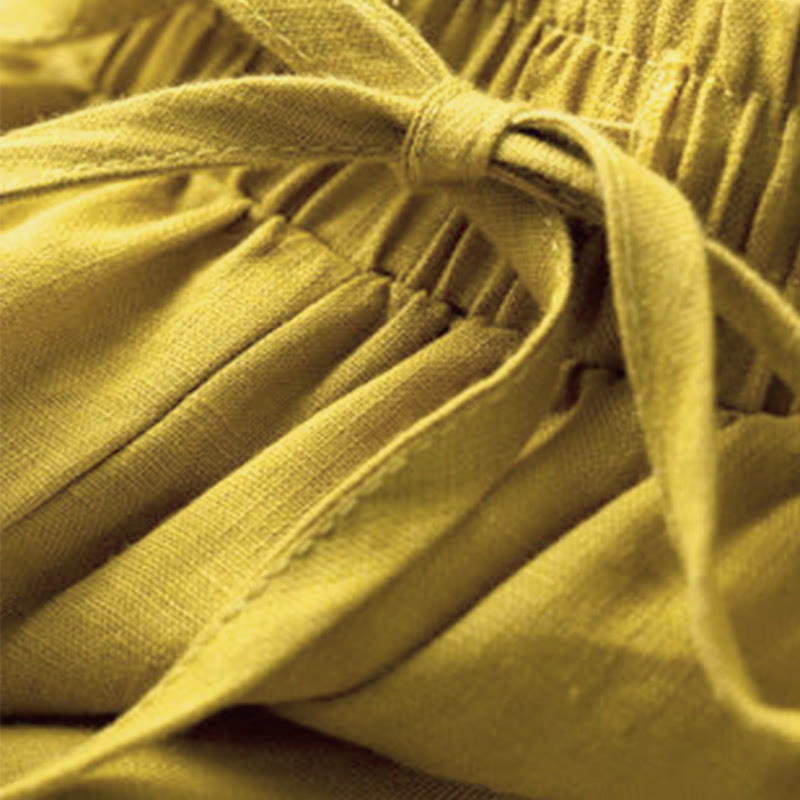 Buddha Stones無地 7-8丈 カプリ クロップドパンツ コットンリネン レディース ワイドレッグパンツ ポケット付き - 金 - US12、 UK/AU16、 EU44 (3XL) - image 1