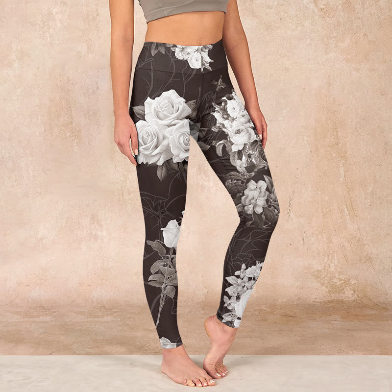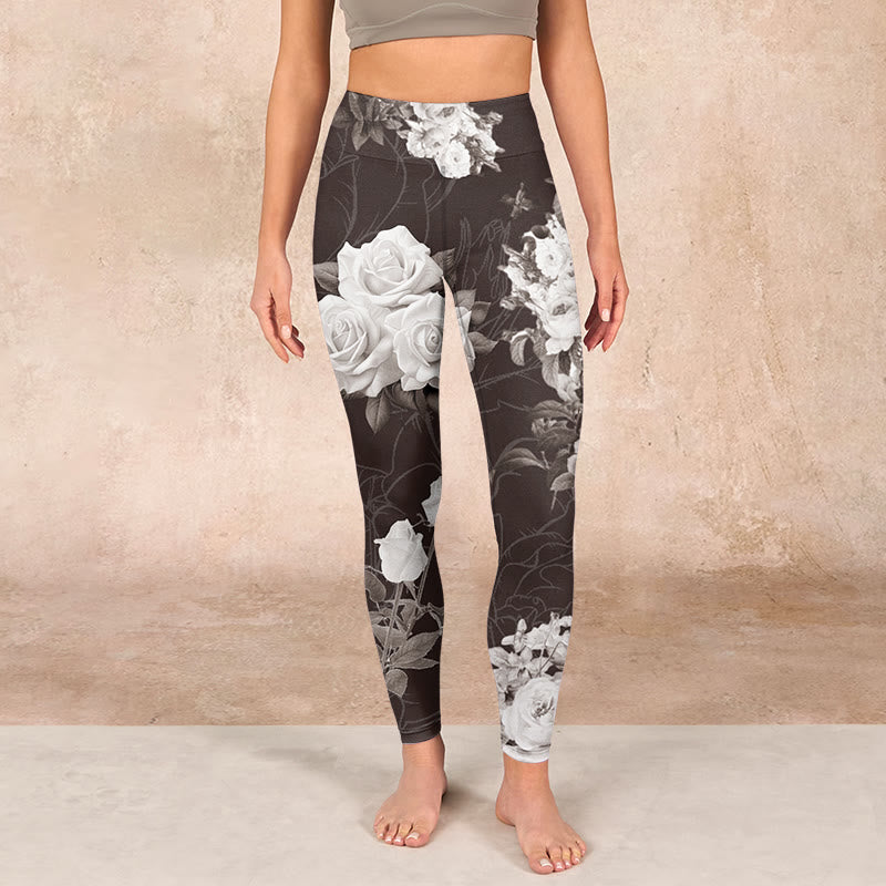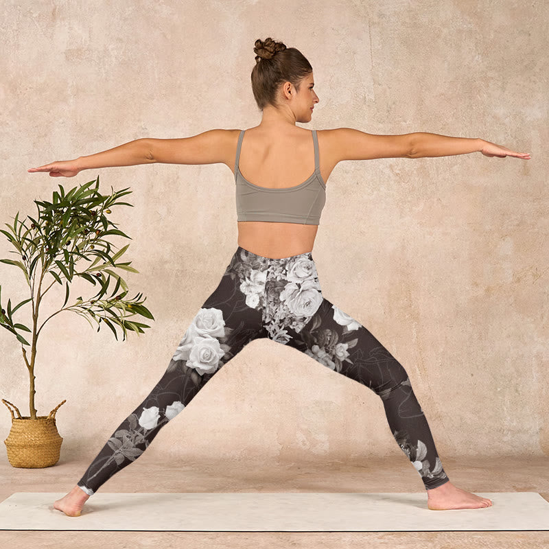- デザインインスピレーション:このレギンスには、優雅さ、バランス、そして新たな始まりを象徴するグレーとホワイトのバラがデザインされています。グレーのバラは中立性と落ち着きを、ホワイトのバラは純粋さと無垢さを象徴し、優雅さと新たな始まりを体現する洗練されたパターンを生み出しています。