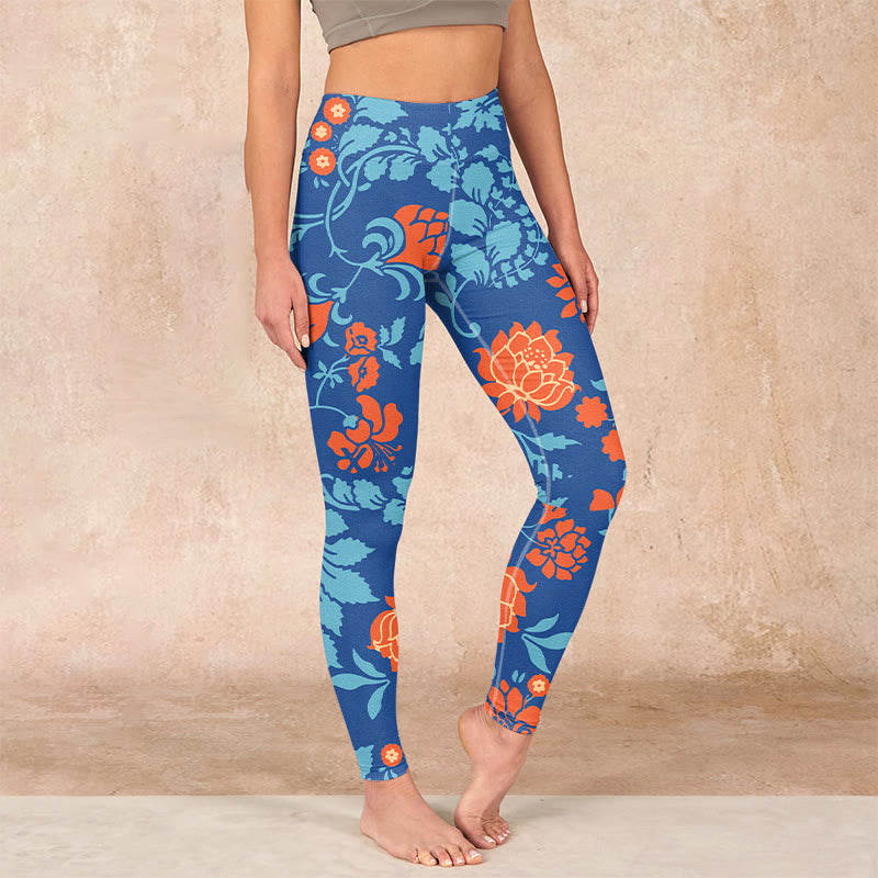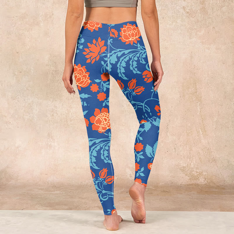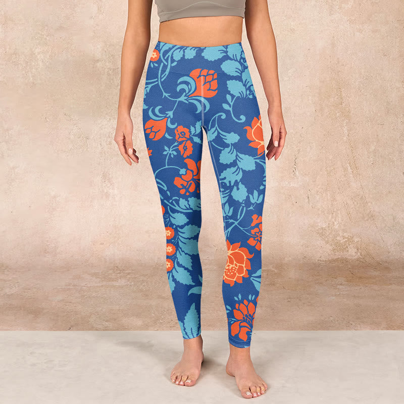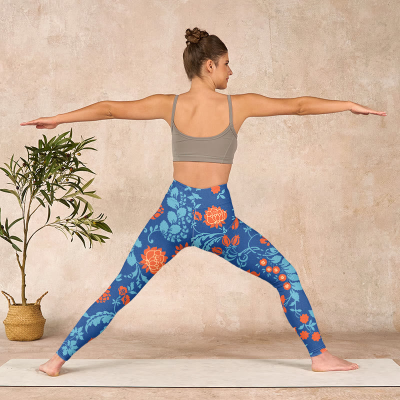 • デザインインスピレーション:鮮やかなオレンジとブルーの花々をあしらった美しい花柄が特徴のレギンス。チューリップのような大きな花や、小さな装飾花など、繊細なデザインが生地全体に広がり、大胆でありながら優雅な印象を与えます。目を引くこのプリントは、モダンなスタイルと自然のタッチを融合させ、アクティブな装いにもカジュアルな装いにもぴったりです。