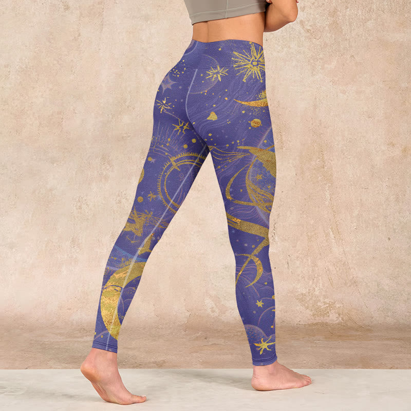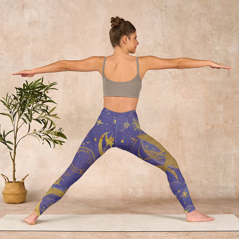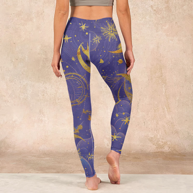 Buddha Stones、月、太陽、星柄のジムレギンス、レディースヨガパンツ - image 0