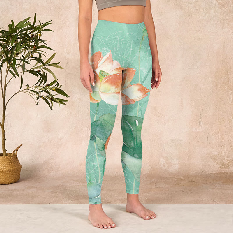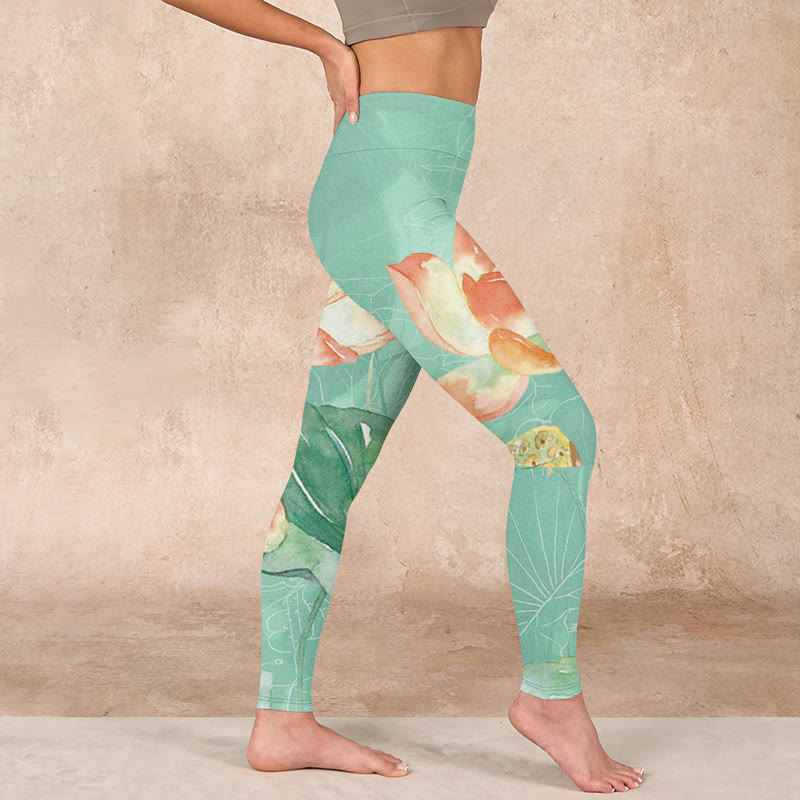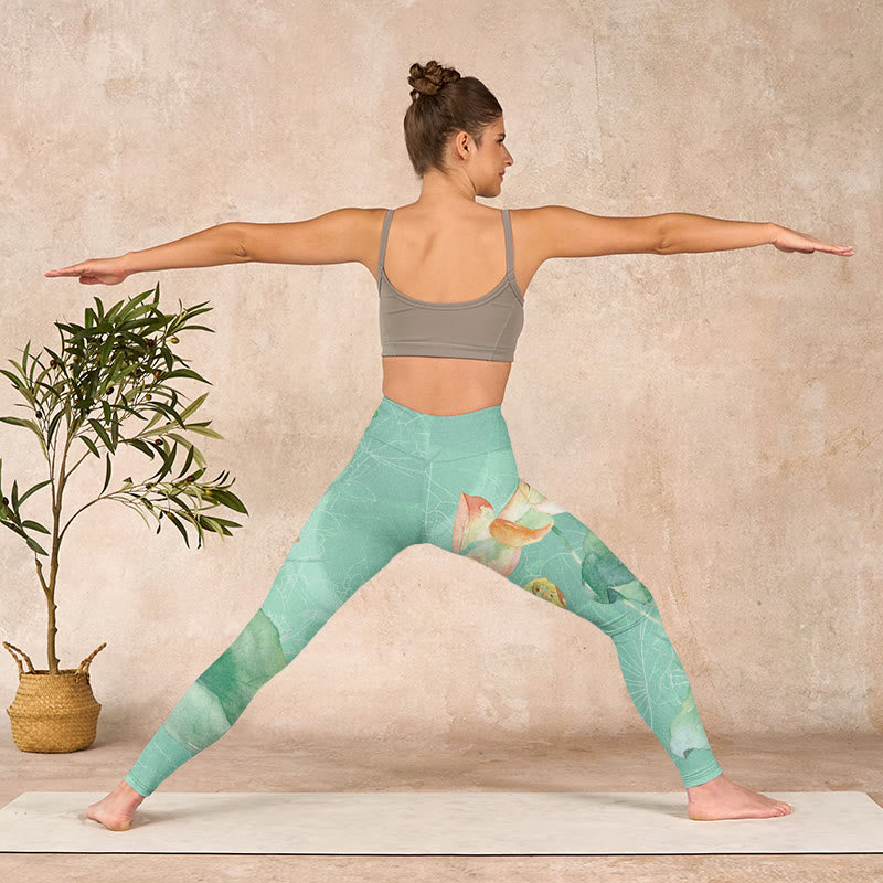 デザインインスピレーション:蓮の花、蓮の葉、そして蓮の鞘をあしらったレギンスは、純粋さ、精神的な成長、そして生命の循環を象徴しています。蓮は悟りと回復力を、葉は安定を、そして鞘は新たな始まりの可能性を象徴し、着用者に変革と自己成長の旅を受け入れるよう促します。