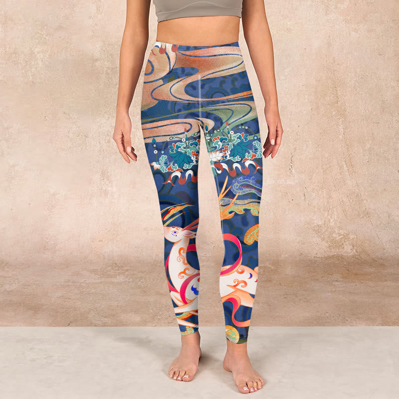 • デザインインスピレーション:このレギンスには、調和、幸運、そして精神的な清らかさを象徴する鹿、瑞雲、蓮の花がデザインされています。鹿は平和と優しさ、瑞雲は祝福と繁栄、蓮の花は清らかさと悟りを体現し、自然の繋がりと人生のポジティブなエネルギーを称えるパターンを生み出しています。