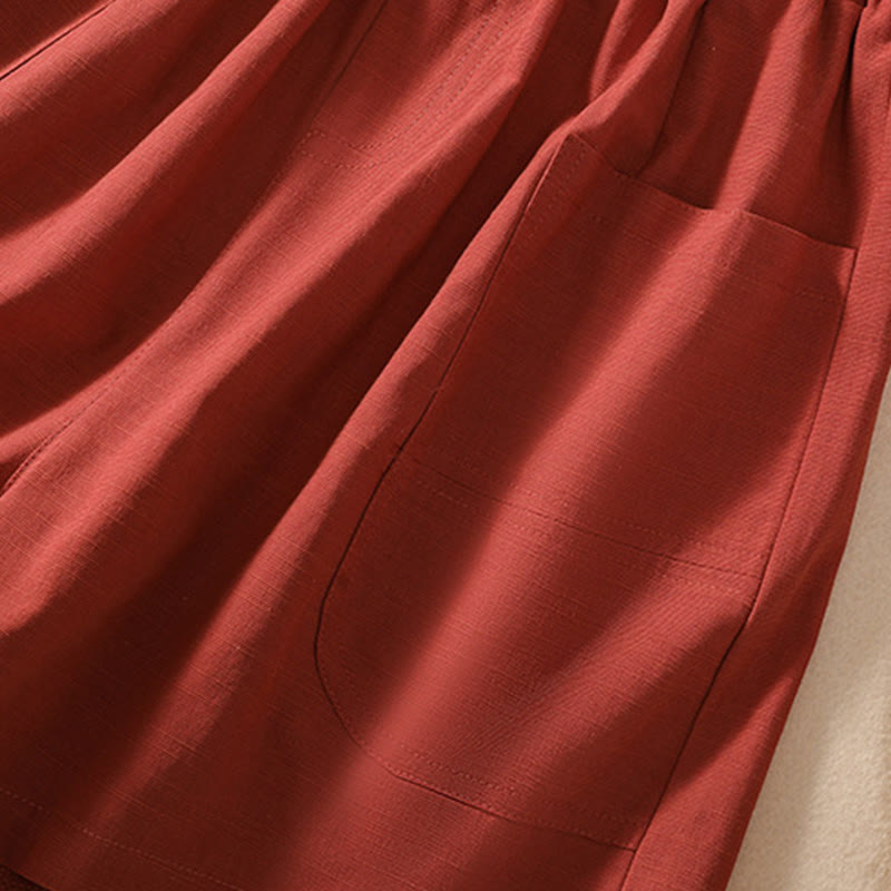 Buddha Stones夏 カジュアル 伸縮性ウエスト 無地 レディース ポリエステル ショートパンツ ポケット付き - image 1