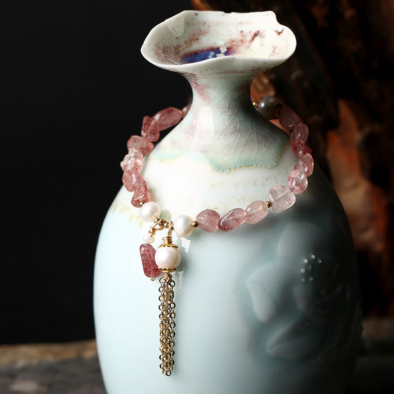 天然ストロベリークォーツパール 14Kゴールドメッキ ラブヒーリングブレスレット