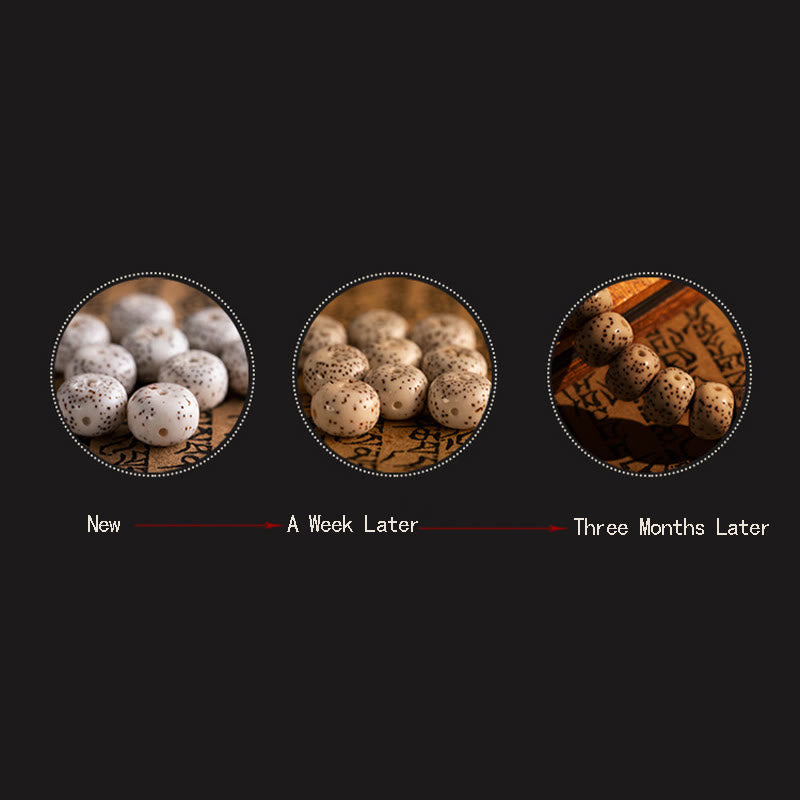 サンスクリット語で「菩提」は「悟りを開いた」または「目覚めた」という意味で、菩提種子は「悟りを開いた種子」を意味します。「悟りを開いた」種子として、多くの修行者は瞑想修行中に菩提種子を身に着け、最終的に悟りを得ようとします。菩提は仏教において、仏陀が物事の本質を理解していることを表す言葉でもあります。これらの黒い斑点のある種子は、神の知恵を求めるすべての人々にとって特別な意味を持っています。