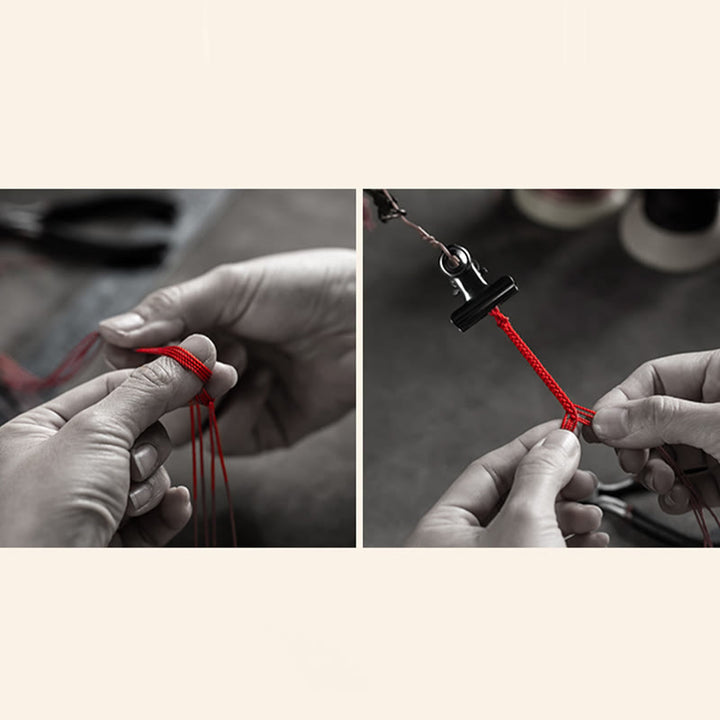 チベット密教の伝統では、儀式の際に手首に紐や紐を巻くことが一般的です。伝統的に、ラマ僧は紐を祝福し、結び目を作り、マントラを込めます。他の伝統と同様に、これらの赤い紐は幸運をもたらし、守護をもたらすと言われています。古代中国の伝説では、運命の赤い糸は目に見えないもので、人生が絡み合うすべての人々を結びつけます。これは中国の縁結びの神である月老によって支配されており、結婚する運命にある二人の絆と深く結びついています。歴史を通して、そして様々な哲学において、赤い紐は守護、信仰、幸運、強さ、そして繋がりのために身に着けられてきました。