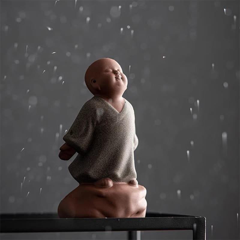 - 精巧な職人技: この僧侶の像は陶器で精巧に作られており、繊細なディテールと穏やかな表情が際立っています。