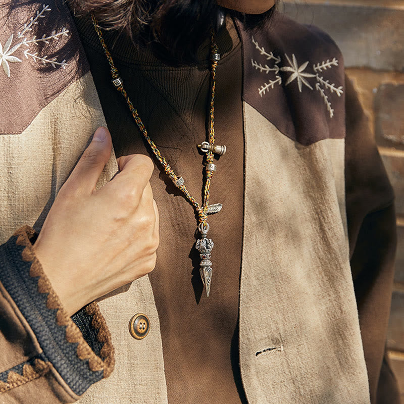 Buddha Stonesチベット ハンドメイド 925 スターリングシルバー ドルジェ ヴァジュラオーム・マニ・パドメ・フムフェザー ストレングス ネックレス ペンダント - ドルジェ/ヴァジュラ(悟り♥霊力) - image 0